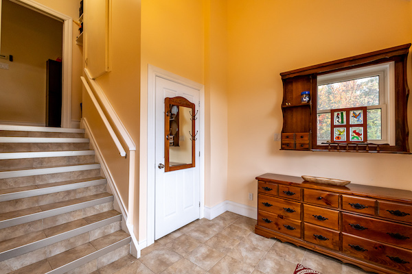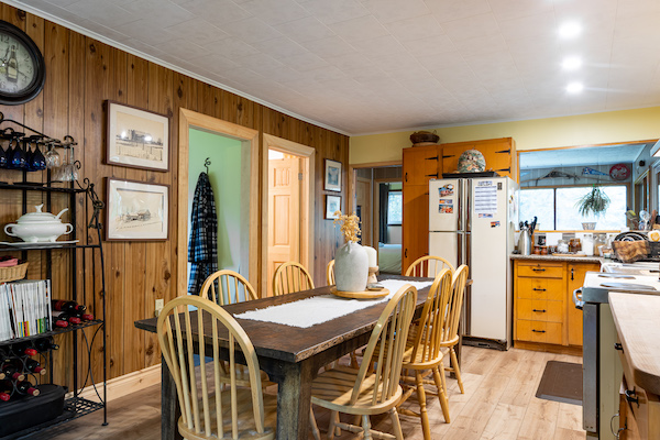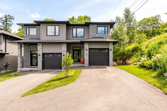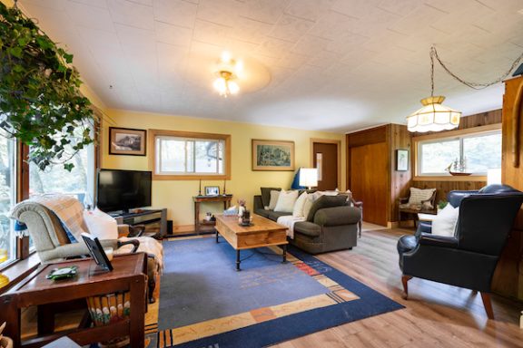 Set back from the road behind a mature tree line, this charming bungalow offers a rare sense of privacy in a peaceful, picturesque setting. Step inside through the generous foyer and discover a bright, airy living room that flows effortlessly into the open-concept kitchen and dining area, an ideal layout for casual family time or entertaining guests. The kitchen provides plenty of counter space, making it both functional and inviting, while the dining area opens directly onto a large deck, perfect for enjoying meals outdoors. Conveniently located near the bedrooms, the laundry closet adds ease to everyday routines. The primary suite serves as a private haven, featuring a walk-in closet and a well-appointed three-piece ensuite designed for comfort. Two additional bedrooms offer cozy accommodations for family or visitors and share access to a spacious four-piece guest bath. Downstairs, the expansive unfinished basement presents a world of potential, complete with a bathroom rough-in and a cold cellar, ideal for creating a custom space to suit your lifestyle, whether that means a fitness studio, home office, or media room. Enjoy the comfort of full municipal services, including natural gas heating and air conditioning, on-demand hot water, and town water and sewer. Located just minutes from downtown, this home offers the perfect balance of quiet living and urban convenience. If you’re looking for a well-appointed home with space, privacy, and flexibility, this bungalow is a must-see.